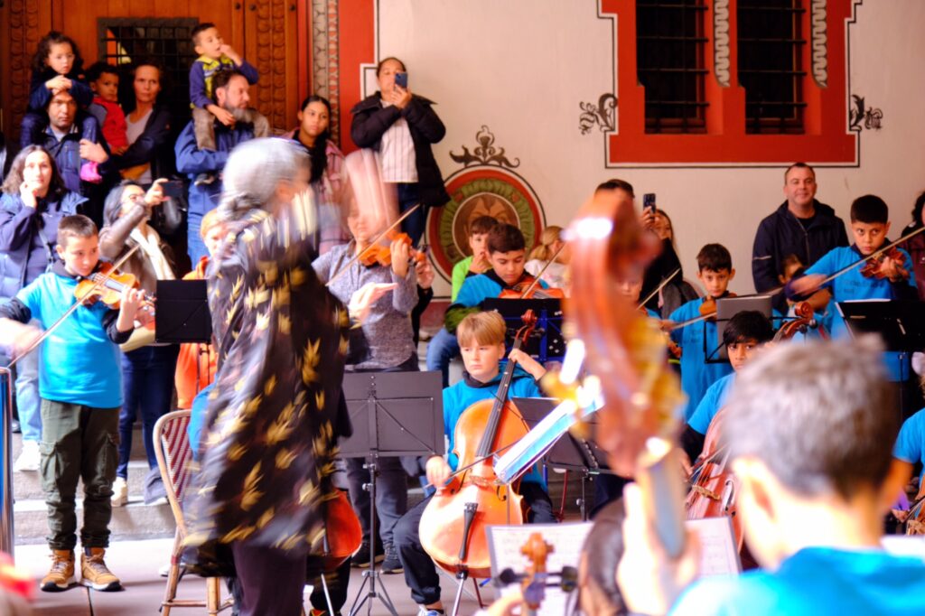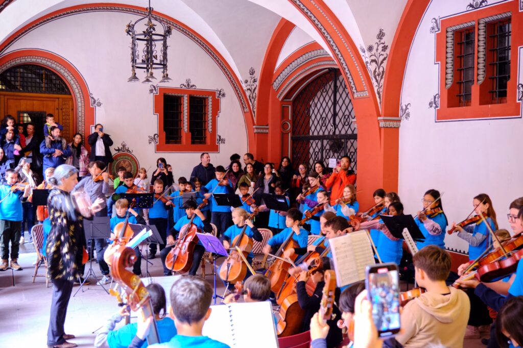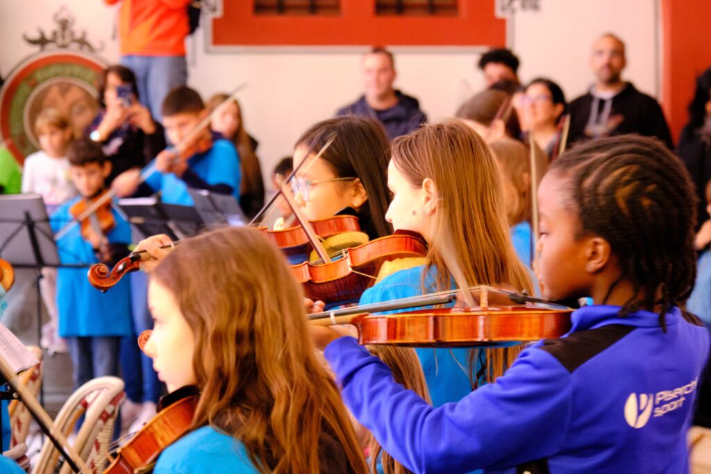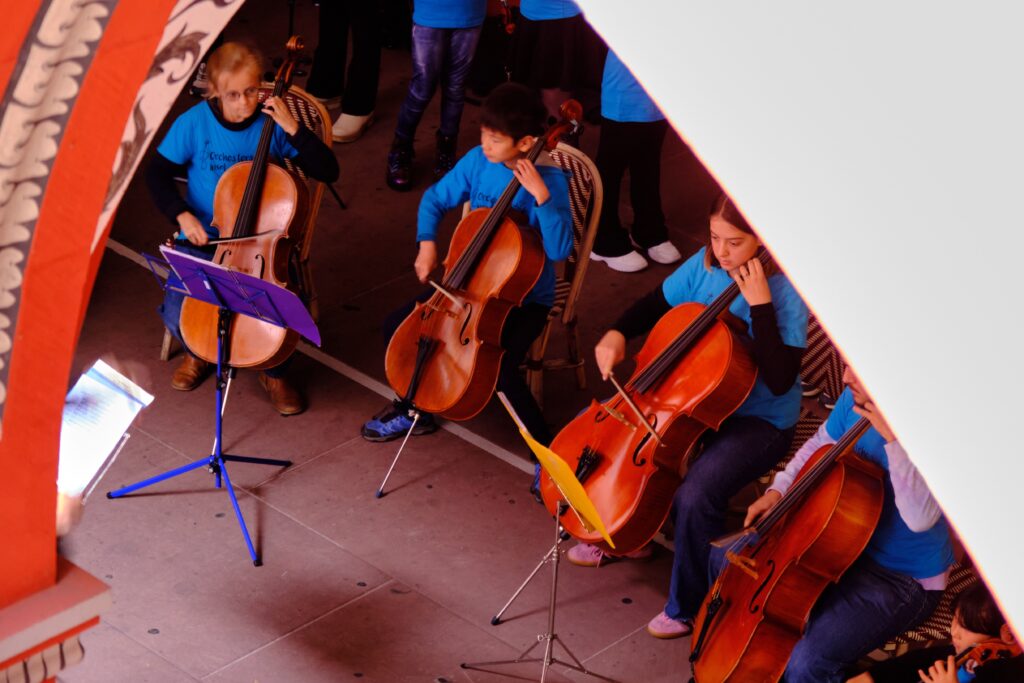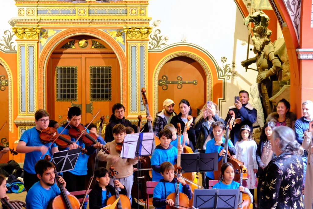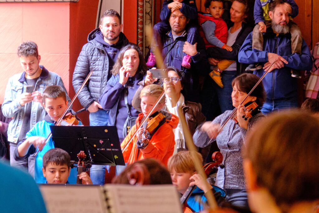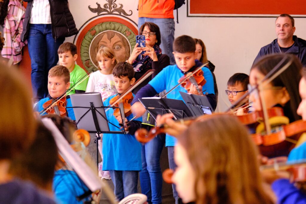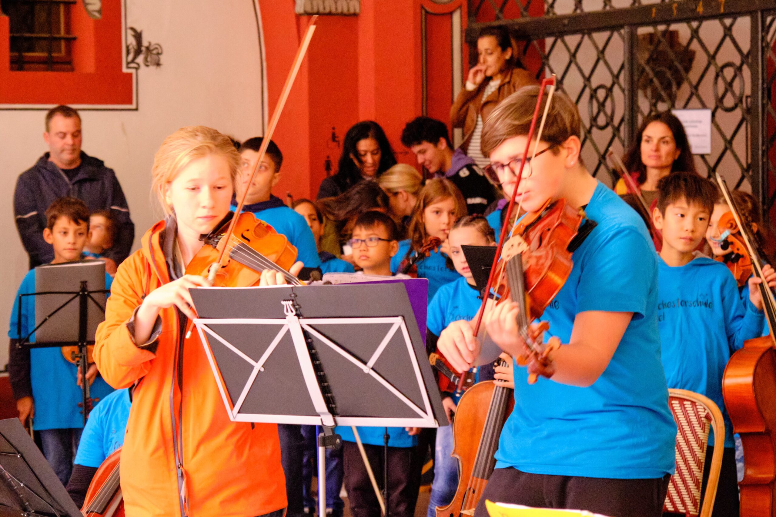 Die Kinder der Orchesterschule Insel spielen Volksmusik für die Basler Bevölkerung